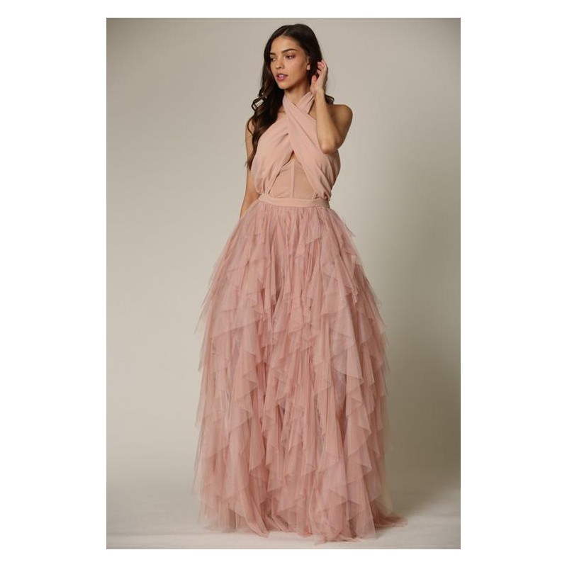 MAXI VESTIDO LUA CORSETTE HALTER TULLE ROSA
