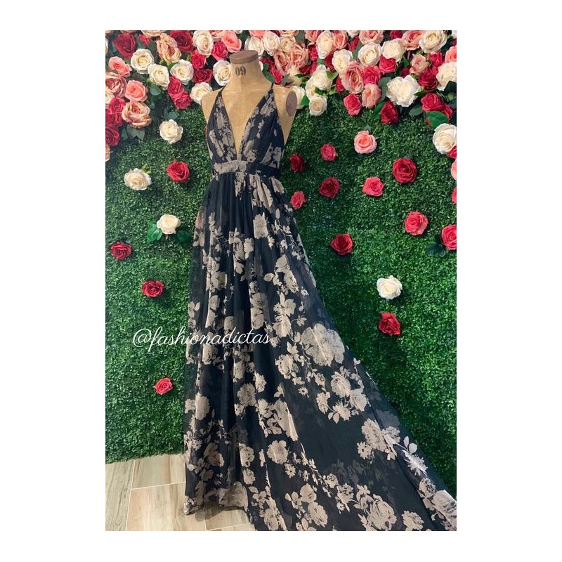MAXI VESTIDO TULLE NEGRO FLORAL.
