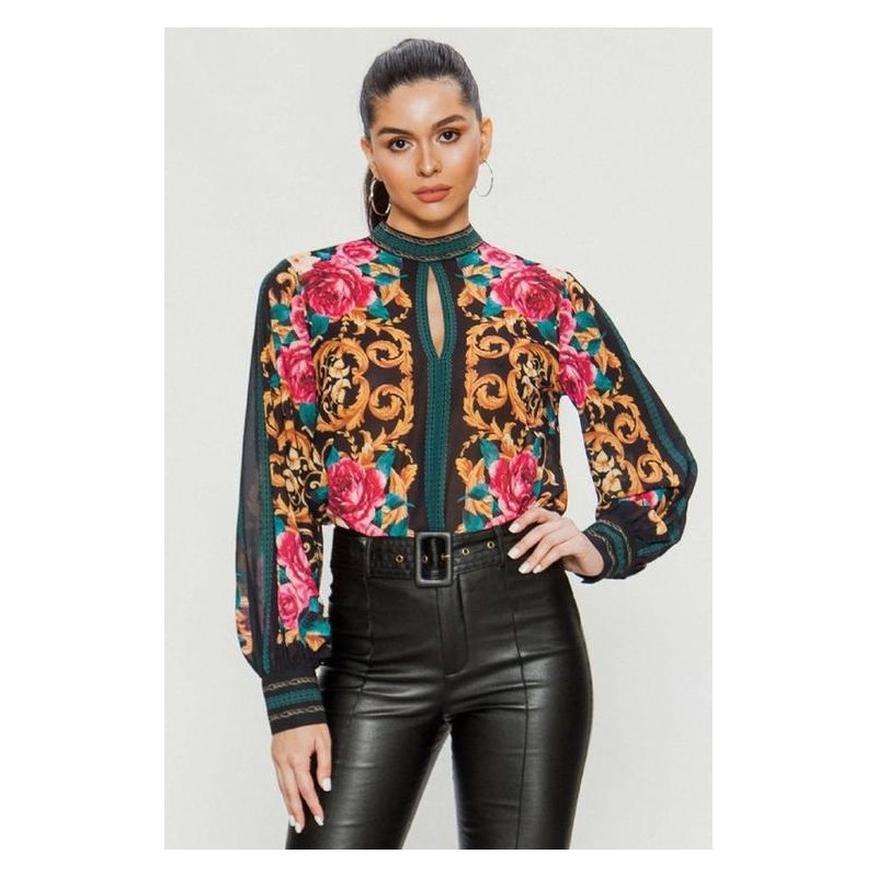 PANTIBLUSA GRECAS FLORAL NEGRA Ver más grande