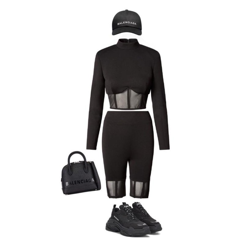 Set compuesto pot top manga larga cuello redondo copa preformada y mesh en cintura, y short corte alto stretch ambos .