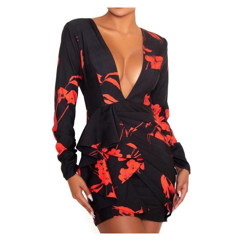 VESTIDO BIANCA FLORAL NEGRO ROJO