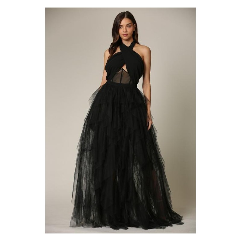 MAXI VESTIDO LUA CORSETTE HALTER TULLE NEGRO Ver más grande