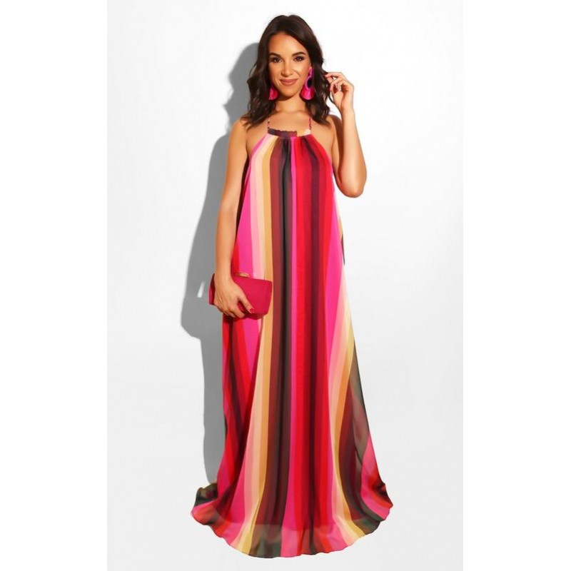 MAXI VESTIDO RAINBOW FUCHSIA PLISADO