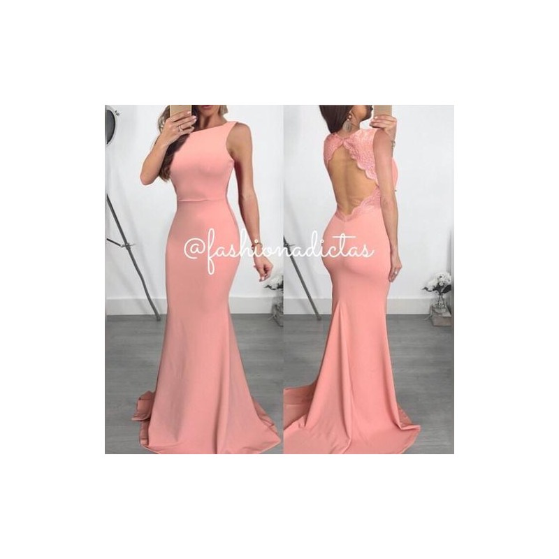 Maxi vestido corte sirena , cuello redondo sin mangas cierre en costado escote incrstacion de encaje y mesh.