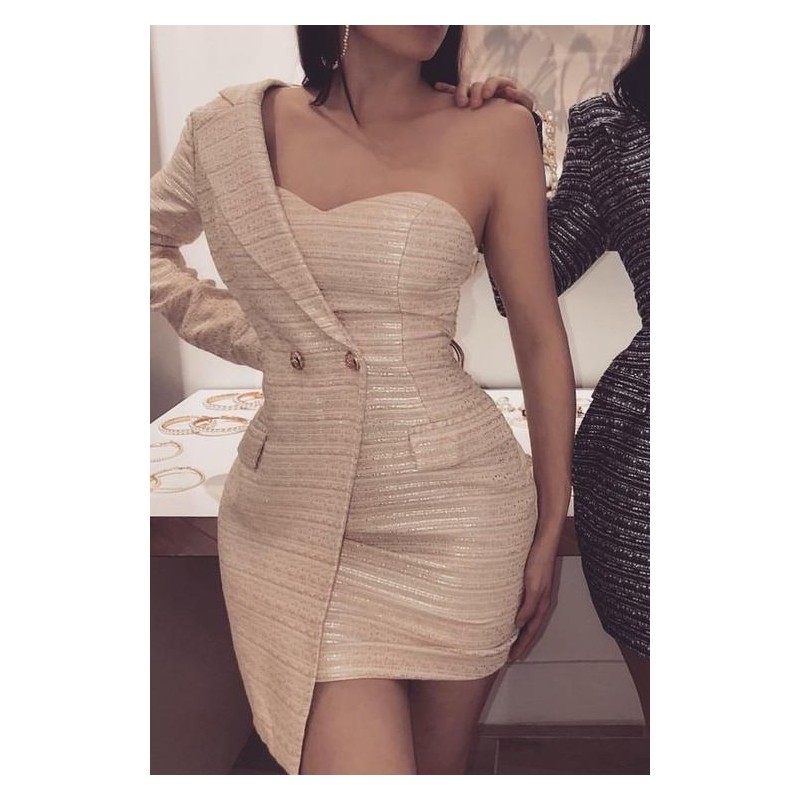 VESTIDO BLAZZER CHAMPAGNE UNA MANGA Ver más grande