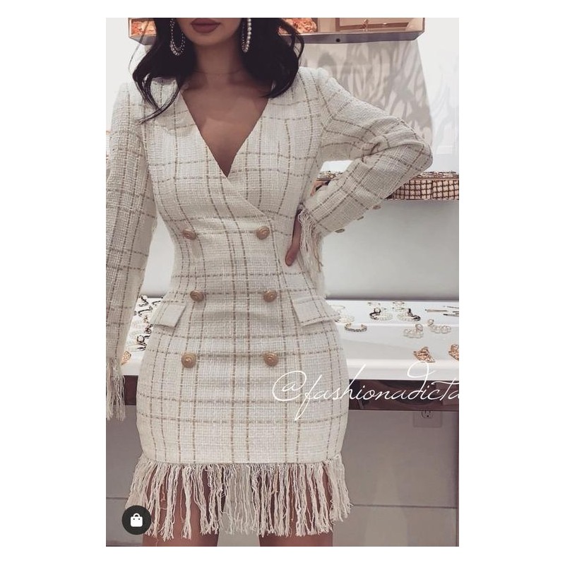VESTIDO BLAZZER TWEED BLANCO/ORO