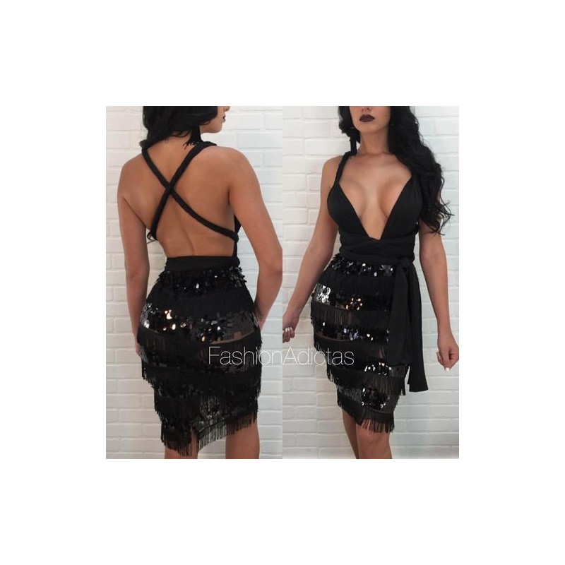 VESTIDO IRMA MULTIFORMA LENTEJUELAS NEGRO.